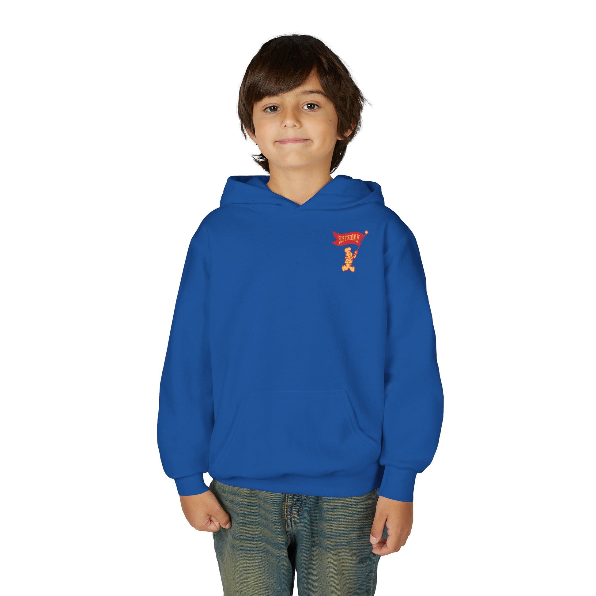 The youth blend hooded sweatshirt is made of ultra-soft, preshrunk fleece that feels wonderful against the skin. The garment is 50% cotton 50% polyester with reduced lint buildup. This makes an excellent combination for printing. The front has a kangaroo pocket big enough for both hands. The neck is reinforced with twill taping.